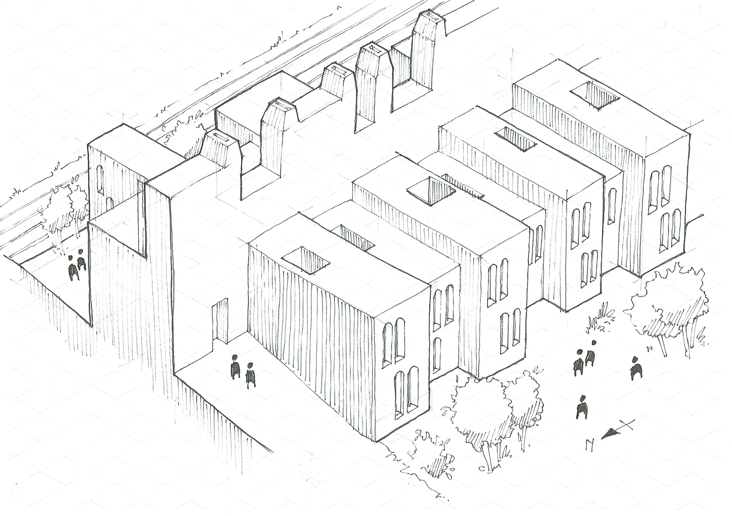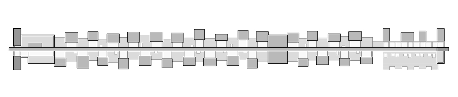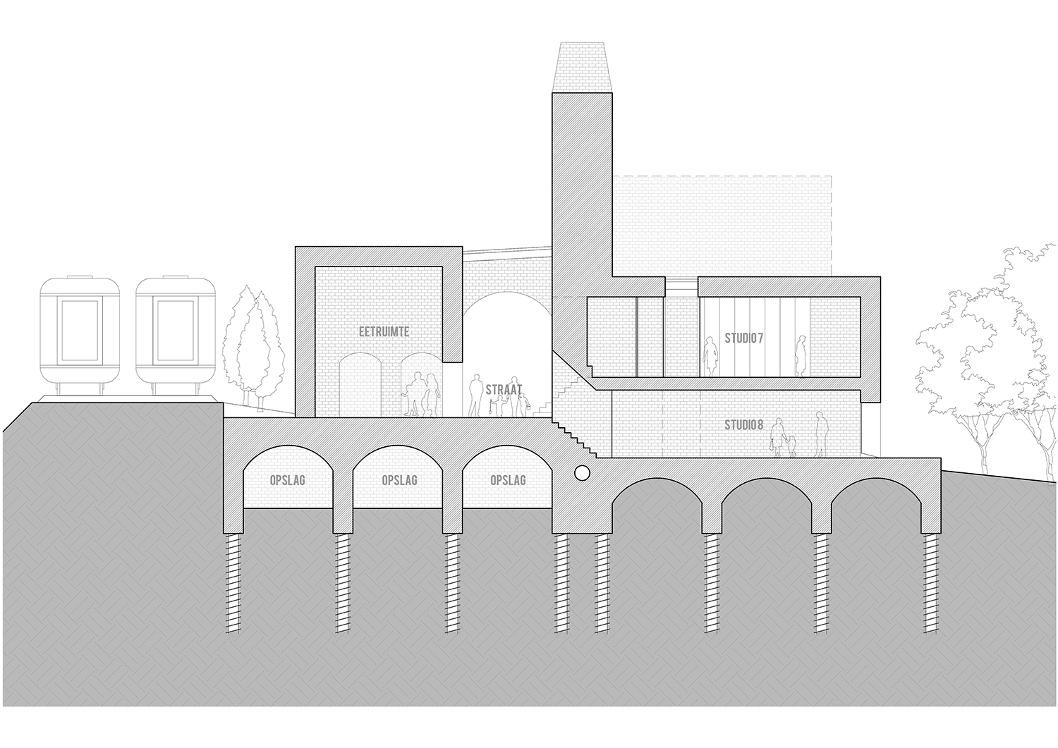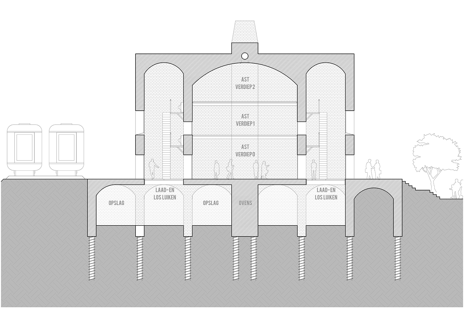 The train stops again in Hollebeke, at this train station. It uses the same qualities as the other buildings, a constant comfortable temperature and a large skylight for maximum daylight. It is located in the middle of the development, to ensure the train becomes a focus point in the new town.