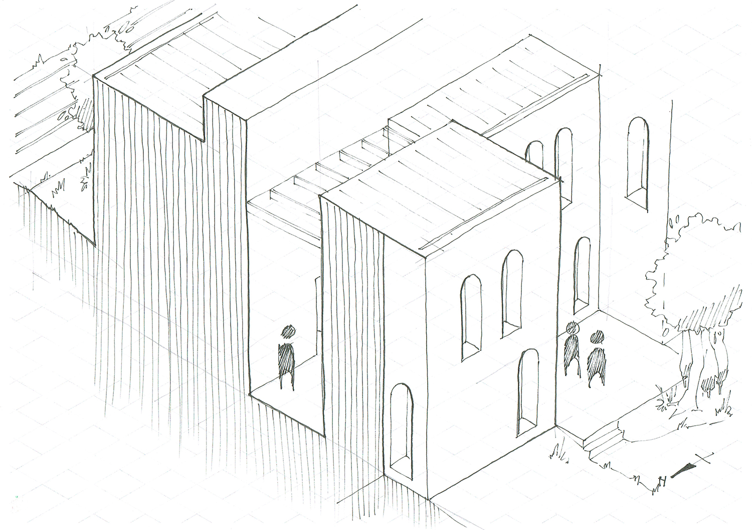 These apartments all enjoy both the heating wall and a personal patio or skylight. The shared living space on the other side of the wall also has enjoys these. This expansive and shared space acts as a social hub.